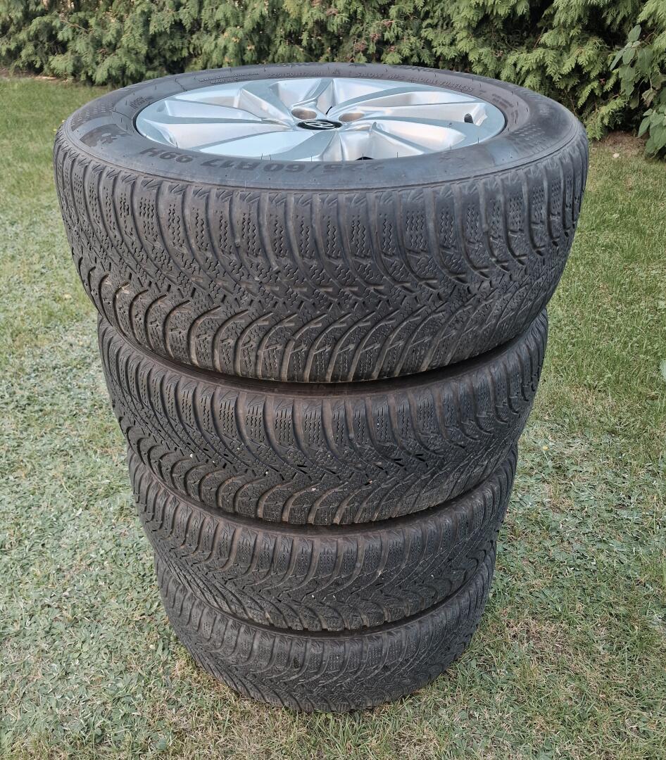 Komplet oryginalnych kół Hyundai (felgi z oponami). Rozmiar 17 cali. Zestaw wraz z czujnikami ciśnienia i dekielkami. Opony Kumho Wintercraft 225/60 (stan jak na zdjęciach).
