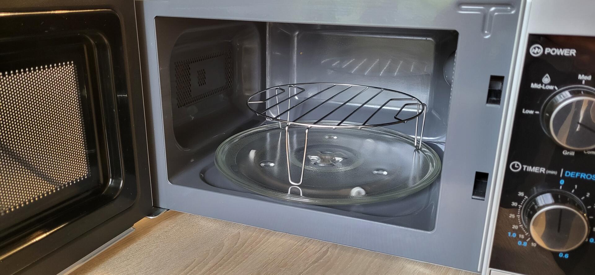 Kuchenka ma wymiary zewnętrzne 44 cm (szerokość) x 25,8 cm (wysokość) x 32,4 cm (głębokość). Talerz obrotowy ma średnicę 25,5 cm.